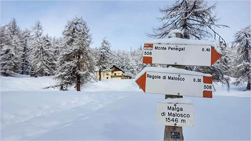 L’escursione in ambiente innevato, di media lunghezza ma senza particolari difficoltà tecniche, compie un anello collegando la soleggiata località di Regole di Malosco alla panoramica cima del Monte Penegal, percorrendo l’itinerario classico di salita. Il rientro prevede invece l'attraversamento di una zona meno frequentata e (speriamo!) con neve meno calpestata.